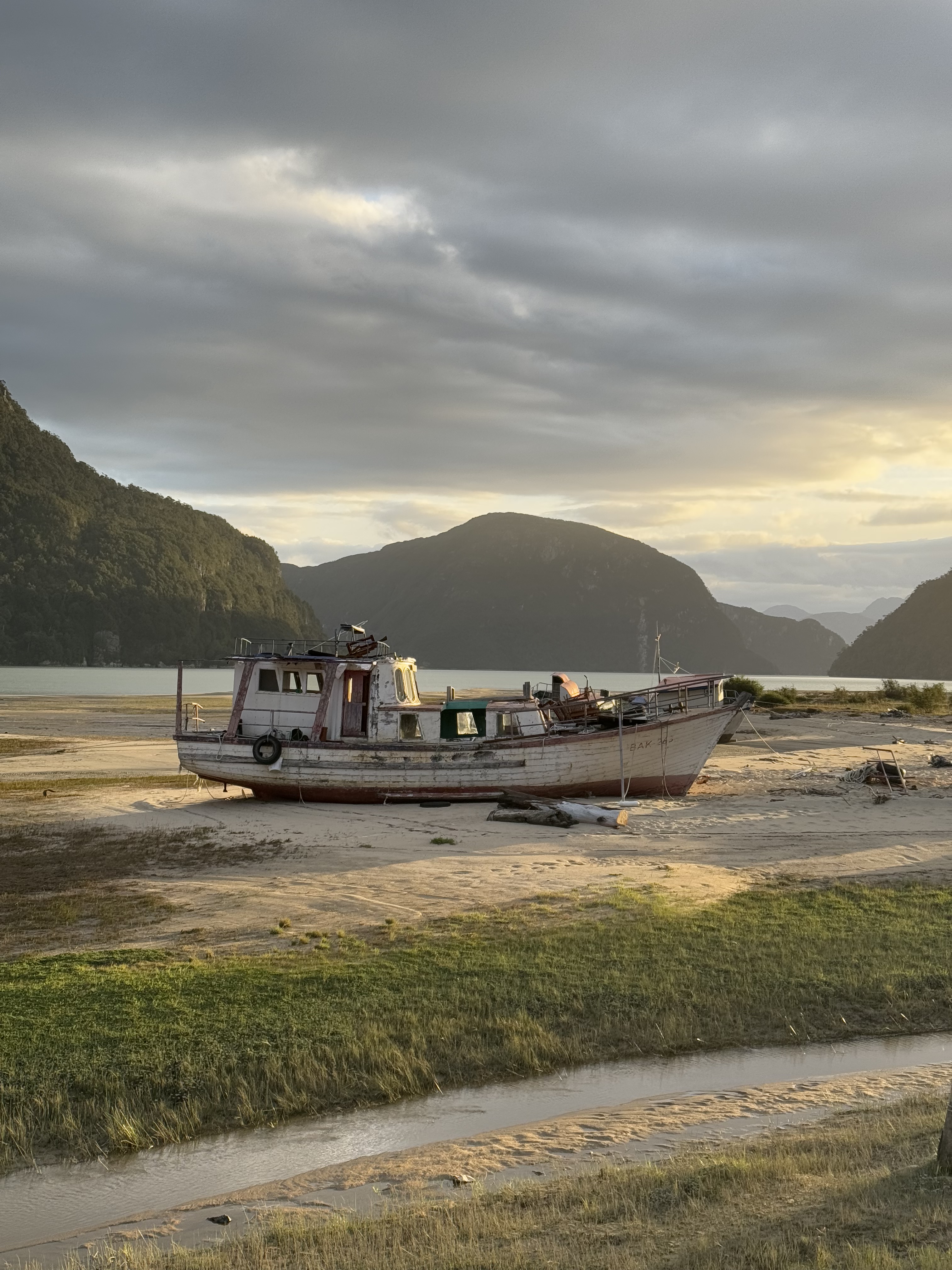 As almost every other village we had seen, Caleta Tortel, the village where we embarked o the ferry, is far from everything – however, even further than others, since it is not even built near Ruta 5, but on a side street and once you get to the town there are no roads to drive on, only wooden walkways on stilts . So, by the time we got to Caleta Tortel we had already been exploring Patagonia for about three weeks and we had been distant from any kind of infrastructure for quite some time. However, this level of remoteness was something else. I could‘t help but think „How would an amulance get here? How the hell would you bring someone to the next cardiac catherization laboratory? Where even is the next cardiac catherization laboratory??“.